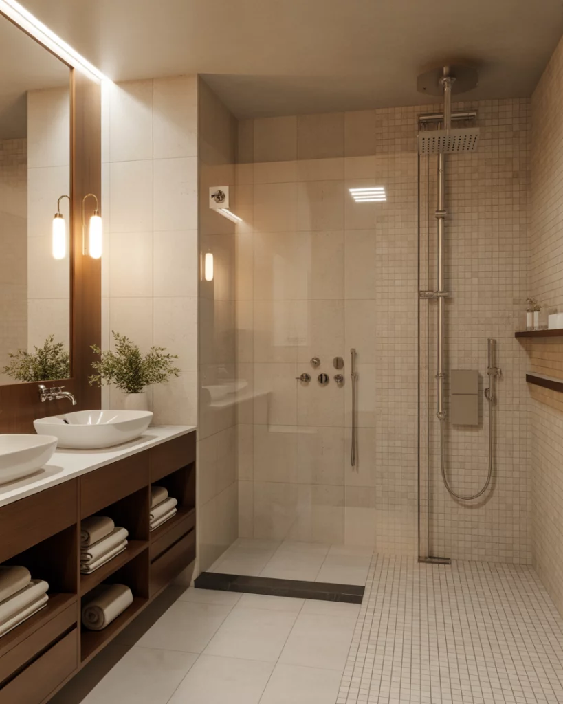 In cities where every inch matters, design luxury modern small space solutions redefine what a bathroom can be. Floating vanities, sliding glass doors, and wall-hung toilets all maximize square footage without sacrificing elegance. Clever storage keeps the room tidy, while large mirrors amplify light and space. Lifestyle blogs likeApartment Therapyoften highlight how small bathrooms can still radiate luxury with the right design choices.