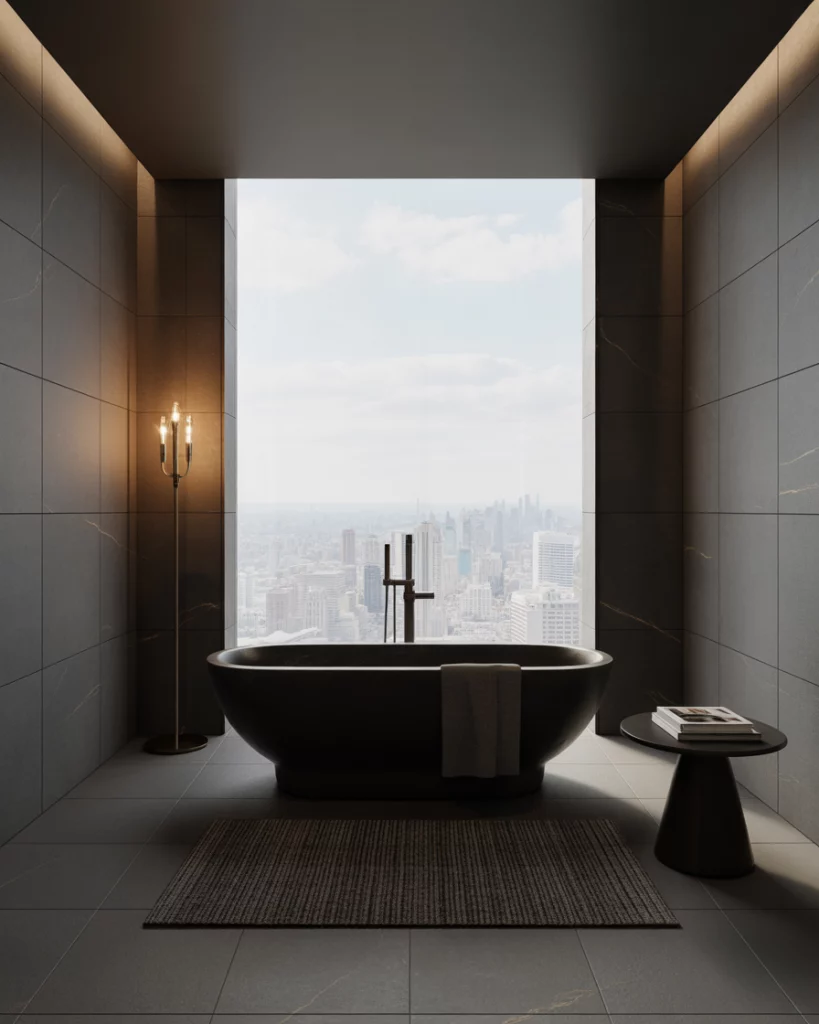 The rise of design luxury black bathrooms proves that dark doesn’t mean gloomy. In fact, black accents—whether in tiles, sinks, or mirrors—bring an intimate, sophisticated character to the room. Pair them with soft lighting and matte finishes for an elevated luxury feel. Homeowners in urban lofts especially enjoy this bold choice, showing that black bathrooms can be both daring and timeless.