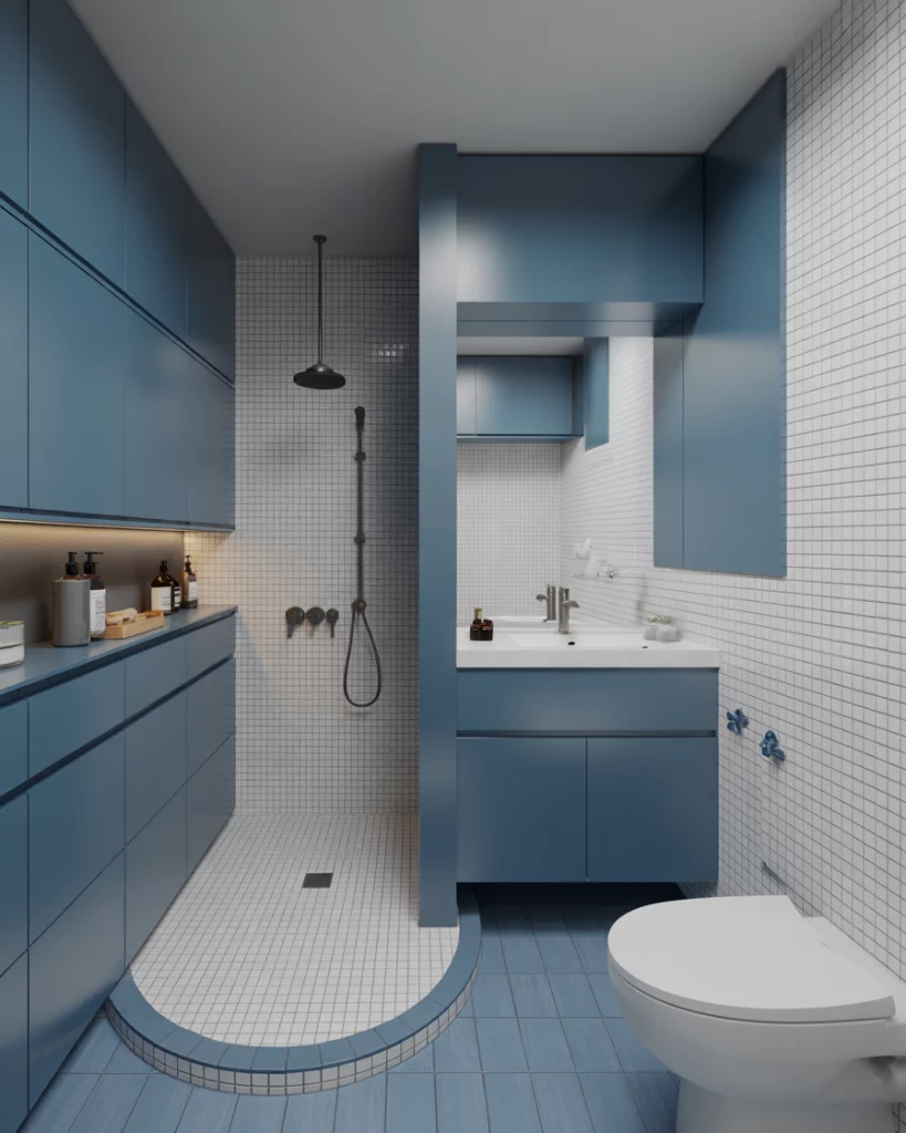 Blue is a timeless bathroom favorite, but in 2026, designers push it further with layered tones—from pale sky hues to deep navy. A design modern blue palette brings a refreshing and calming vibe, often paired with brushed steel fixtures or white tiles for contrast. Inspired by coastal retreats, this look appeals to anyone craving both relaxation and vibrancy.