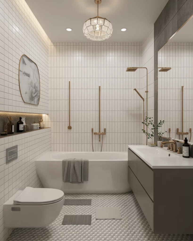Neutral tones remain popular, but in 2026, design luxury modern white tile paired with grey elements dominates bathroom trends. The crispness of white enhances brightness, while grey accents add sophistication and depth. Together, they create a harmonious canvas that works in both tiny apartments and larger homes. This combination reflects timeless design ideas celebrated by global design blogs.