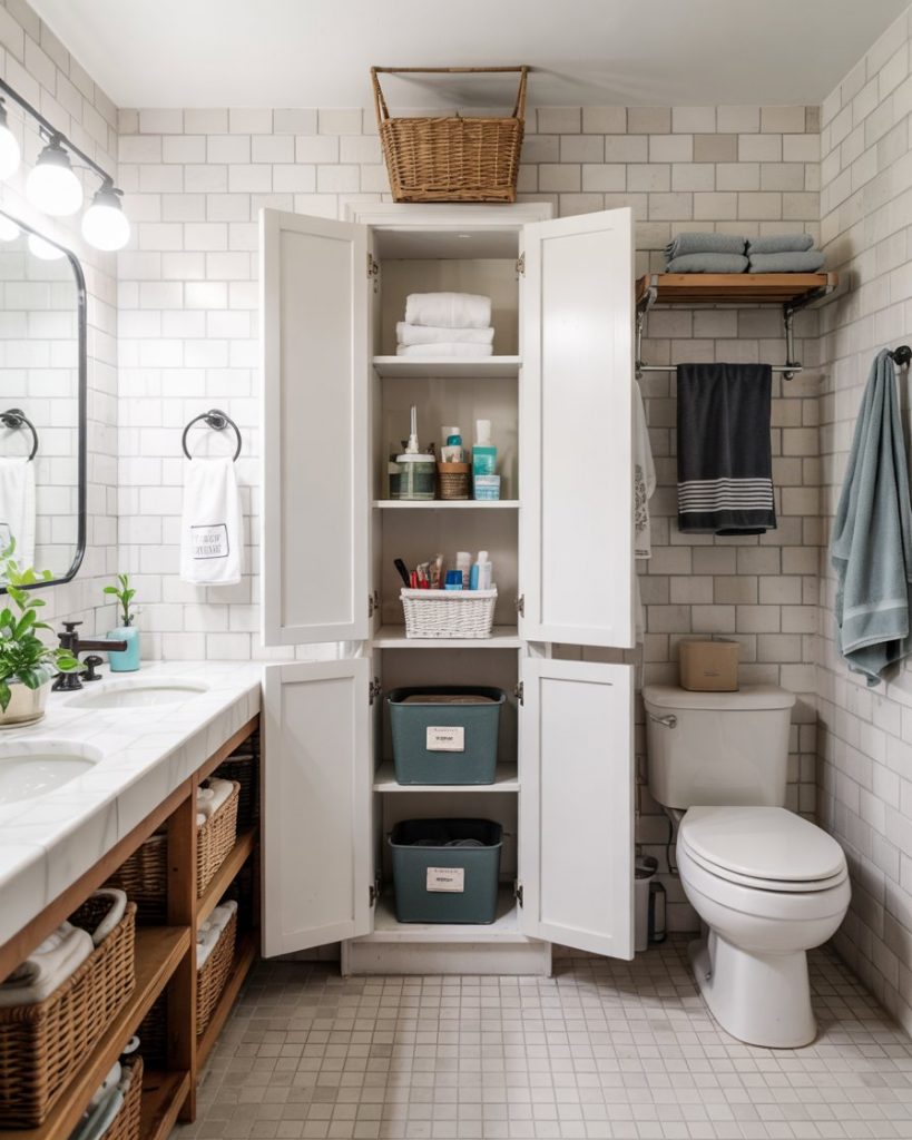 8. Shared Bathroom Closet-Style Storage for Families or Couples