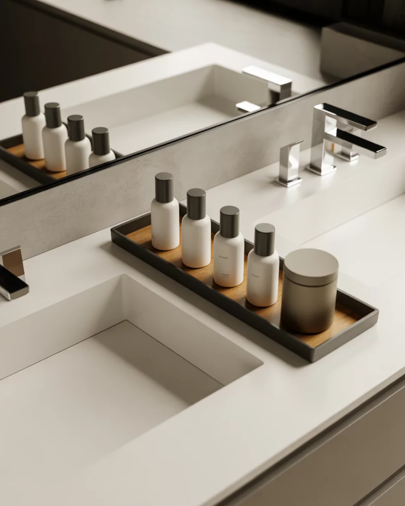 When thinking of how to better your bathroom countertop organization, ideas will revolve around where you inevitably always have clutter. Therefore, you can have a curated zone to place only your necessities, like your toothbrush and your soap, and a tray for your current beauty and makeup. Of course, you will still have to accommodate your basin while making your space more aesthetic. If you are in a small dormitory or apartment setup, you can treat your countertop like a mini-stage and place your decorative tray and one more small item, like a potted plant, and keep all others away. Then you will have a surface that is relaxing and not stressful.