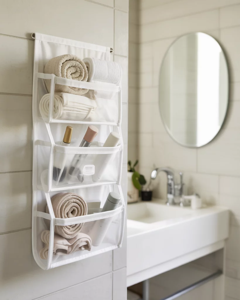 Space is an even more critical concern for a bathroom. So you have to think differently when you are installed in a college dorm room and some apartments. Use your wall space as a vertical one and install over-the-door pockets. Then you can buy those cheap bins in bulk from a place like your friendly neighborhood Dollar Tree. So you can buy a whole binload full for you and your college roomies. So you stash all your bath towels and/or shower supplies in those under-the-sink bins. Then you throw all your other stuff up top in those over-toilet bins. These space-saving tips ensure that all is tidy and well-organized even with less square footage.