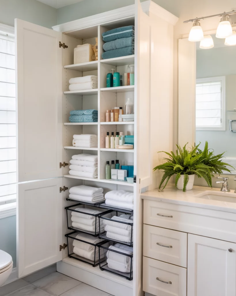 8. Shared Bathroom Closet-Style Storage for Families or Couples