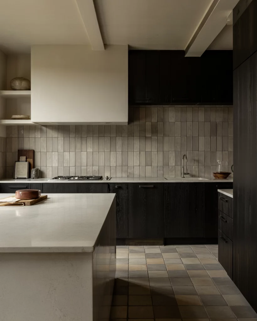 Linear tile creates a sleek complement to black cabinetry, especially when using materials that highlight modern simplicity. Introducing touches of white tile floor or lighter surrounding surfaces helps balance the depth. The overall effect is crisp and architectural, ideal for freshly renovated kitchens aiming for long-term appeal. Linear backsplashes are easier to clean than highly textured tile, making them a smart choice for busy families who want style with low maintenance.
