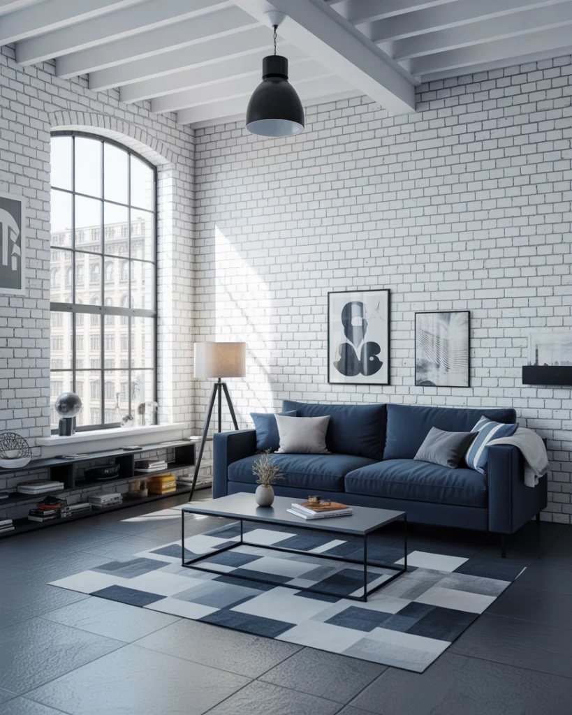 14. Urban Loft with Industrial Blue Accents