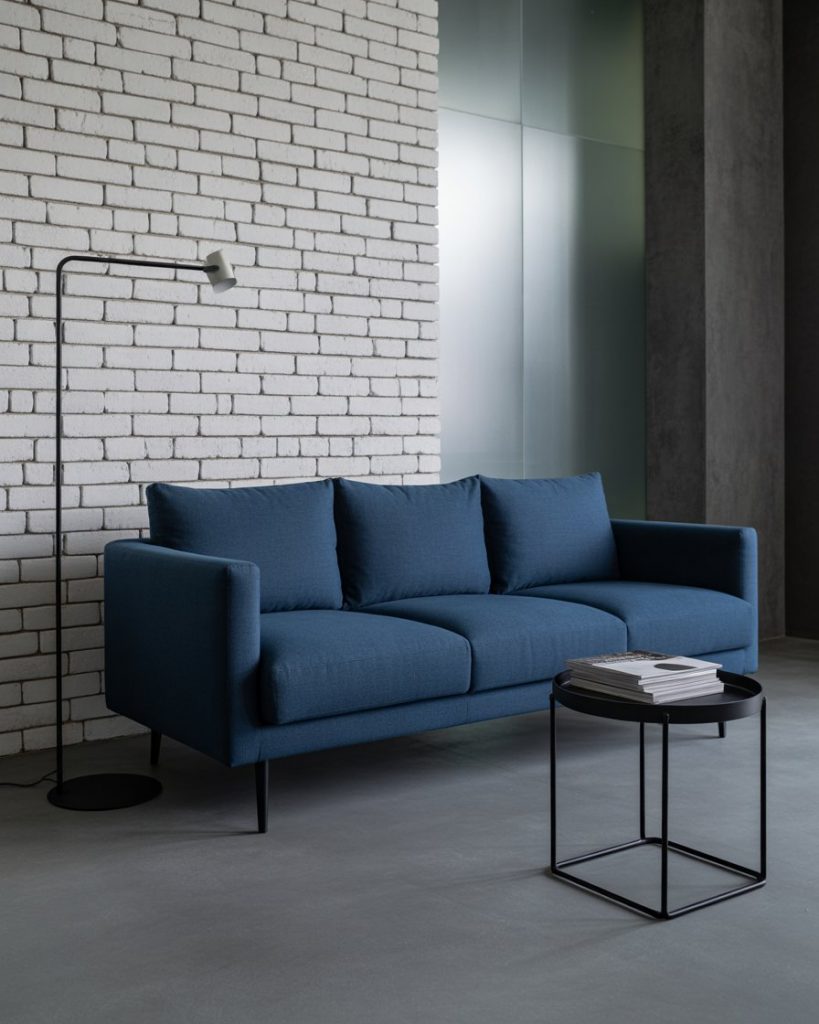 In an urban loft, the juxtaposition of cool materials and deep blue tones creates depth and modernity. Combine whitewashed brick, black steel elements, and a navy sofa to ground the space. The black, grey, and blue blend adds an edgy sophistication, perfect for city dwellers. Studio Ilse has explored this interplay of texture and tone in her loft projects.