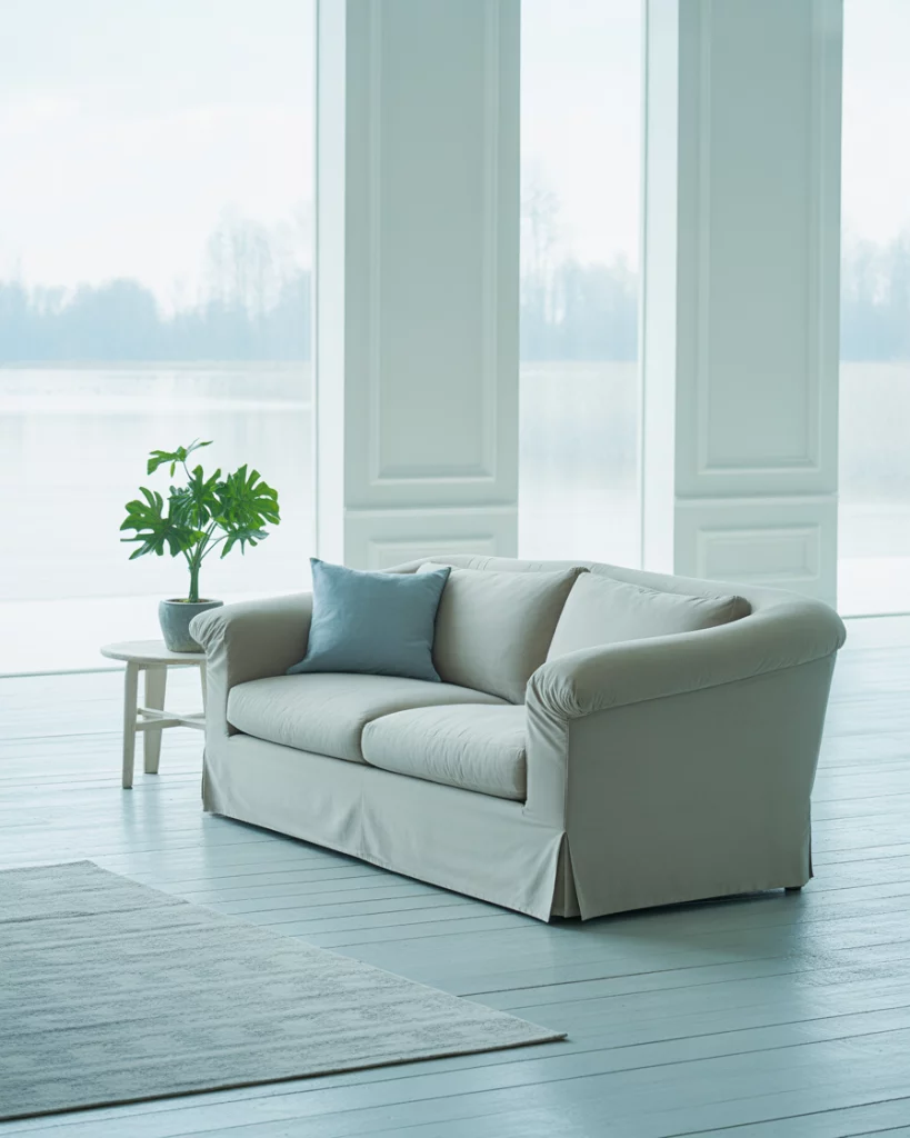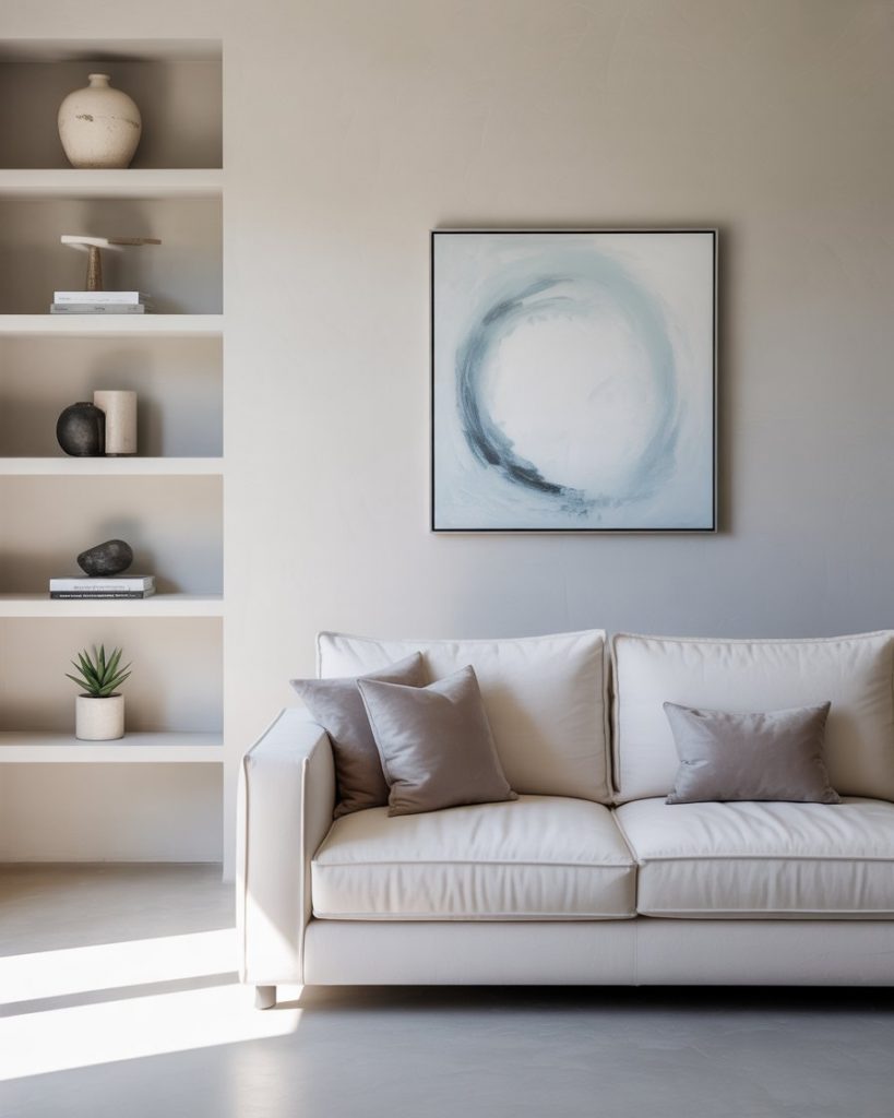 For those who crave calm and order, a minimalist approach with soft light blue and white is a perfect match. Keep furniture low and neutral, using pale woods and linen materials. Touches of grey or natural stone balance the composition. This room becomes a serene retreat, ideal for decompressing after busy days. Inspired by Japanese and Nordic fusion interiors often seen on Kinfolk.