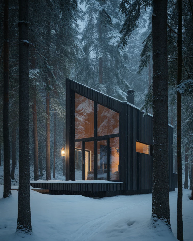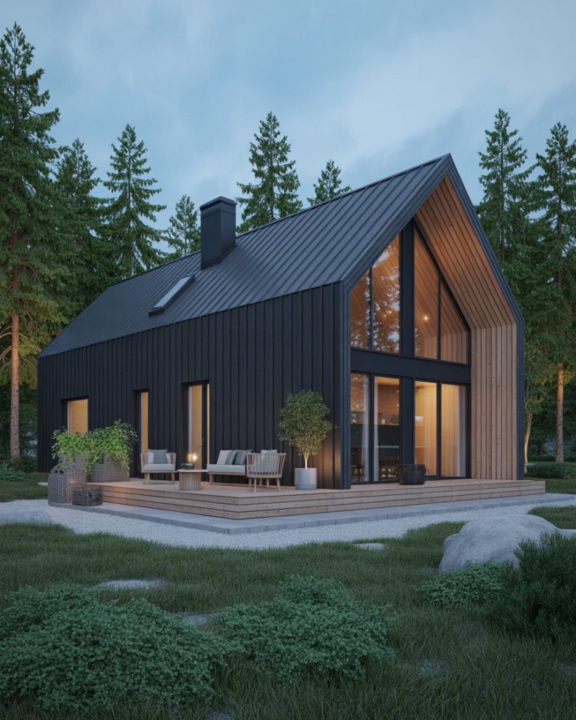 11. Scandinavian-Inspired Black House with Minimal Wood Accents