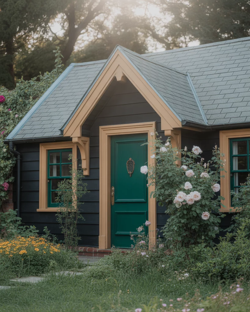 12. Black Cottage with Landscaping and Cream Brown Details