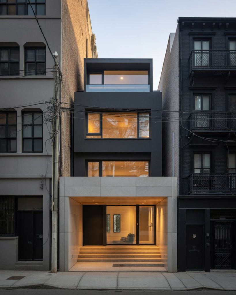 16. Urban Townhome with Grey and Black Exterior + Modern Lighting