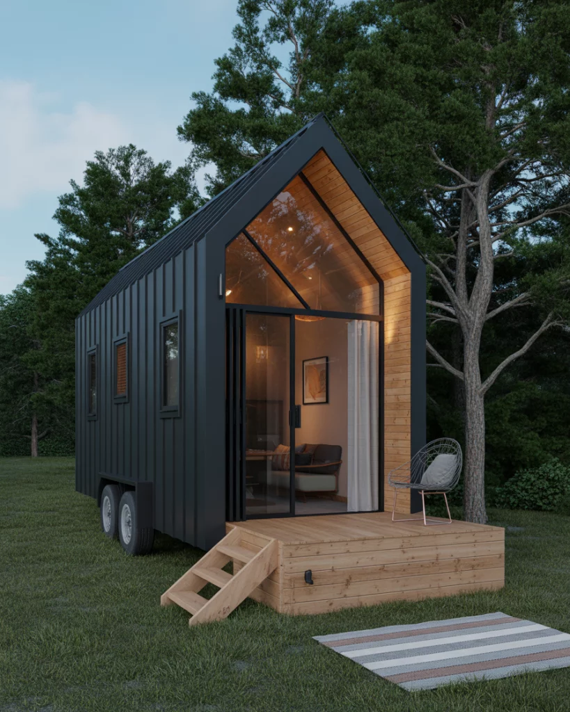 23. Black Tiny Home with Copper Lights and Design Modern Details
