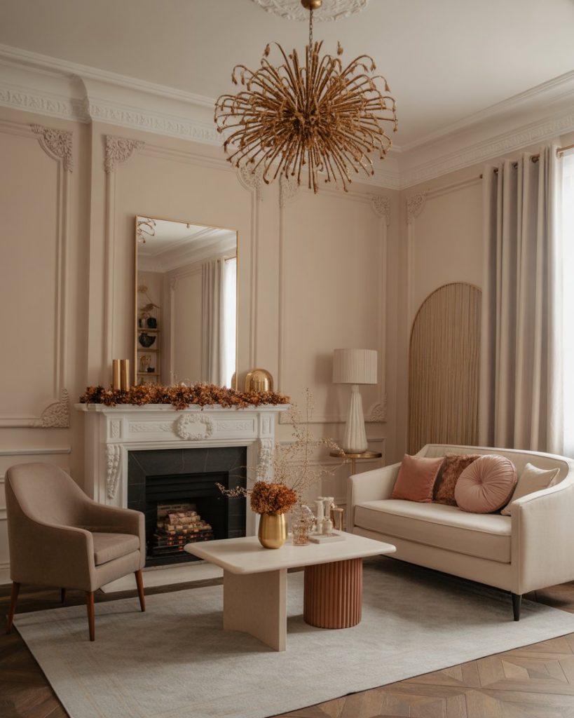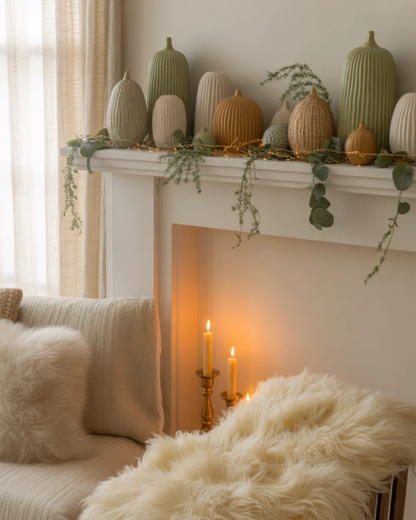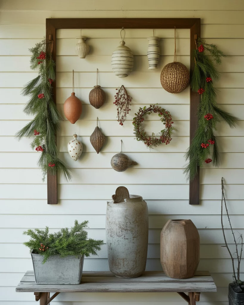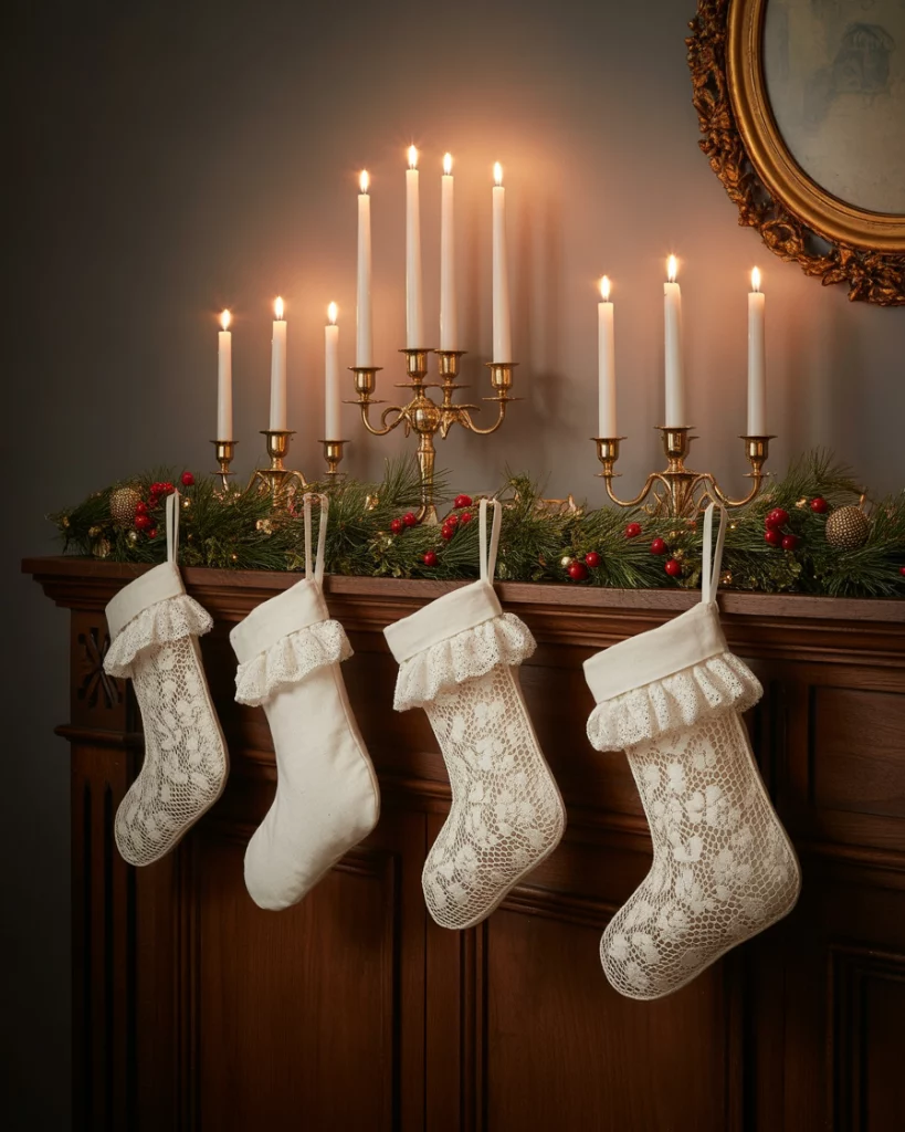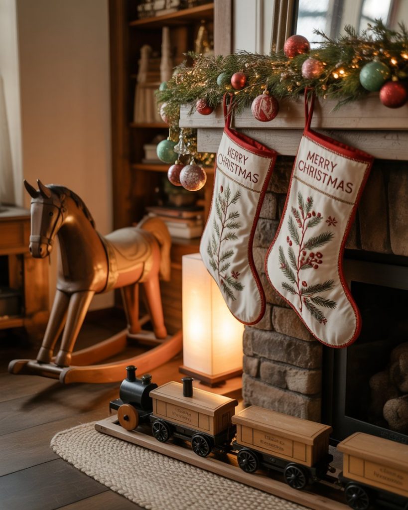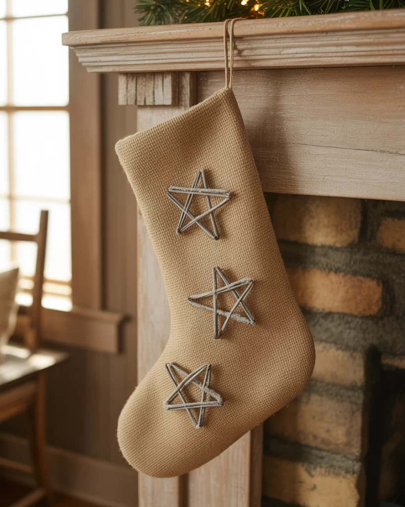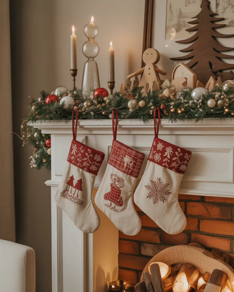 The primitivism style is coming back to 2025, mixing rough textures with a straight forward handmade beauty. Burlap stockings, twig stars and tin candle holders would be right at home in a country farmhouse or a wood-accented living room. This appearance reminds me of childhood in small-town America–where everything was warm and natural.