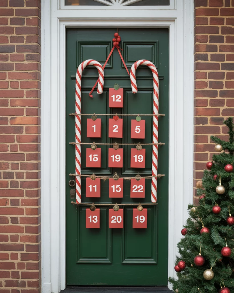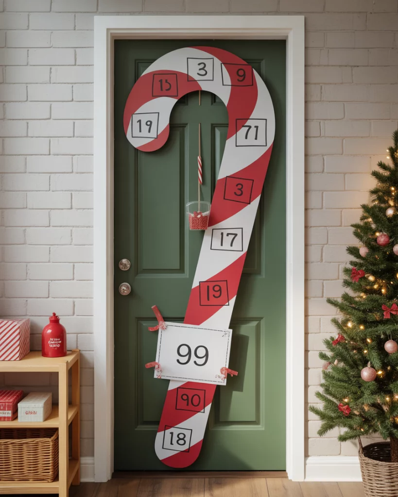 Turn your door into an advent-style countdown with numbered candy canes or mini gift boxes. It’s simple to make and creates daily excitement in classrooms, schools, or home environments. You can add student names or Bible verses for a Christian twist on a sweet tradition.