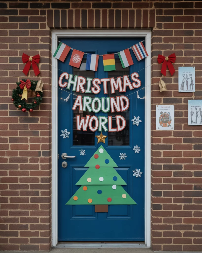 Celebrate international traditions by decorating your door with flags, greetings in multiple languages, and cultural holiday symbols. Ideal for a school contest, this idea mixes science and social studies with festive cheer. It encourages learning and diversity through design.
