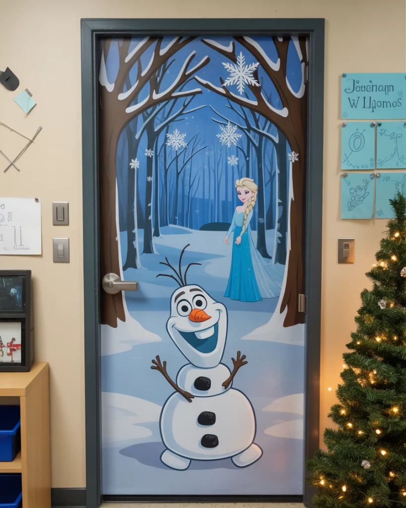 A door featuring Mickey, Minnie, Olaf, or Elsa offers endless Disney charm for fans young and old. Add snowy castles or enchanted forest themes depending on your movie pick. This works for both contest office and classroom displays, especially when you’re competing for those top creative points.