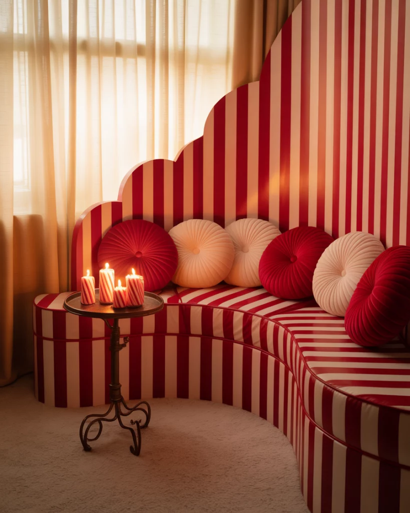 Candy cane stripes are something that are timeless and cheerful. Imagine red-and-white throws, candles with the smell of peppermint, and striped cushions to transform a boring corner into a Christmas getaway. To make it a diy touch, cover the old picture frames with red ribbon or paint wooden dowels in swirling stripes. It is one of those concepts diy easy, which brings visual pleasure with minimal expenses. This arrangement miraculously works in reading nooks or kitchen breakfast nooks, or even a snug passage.