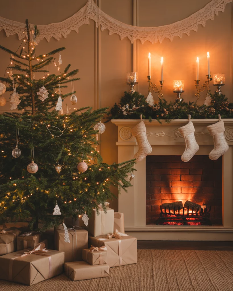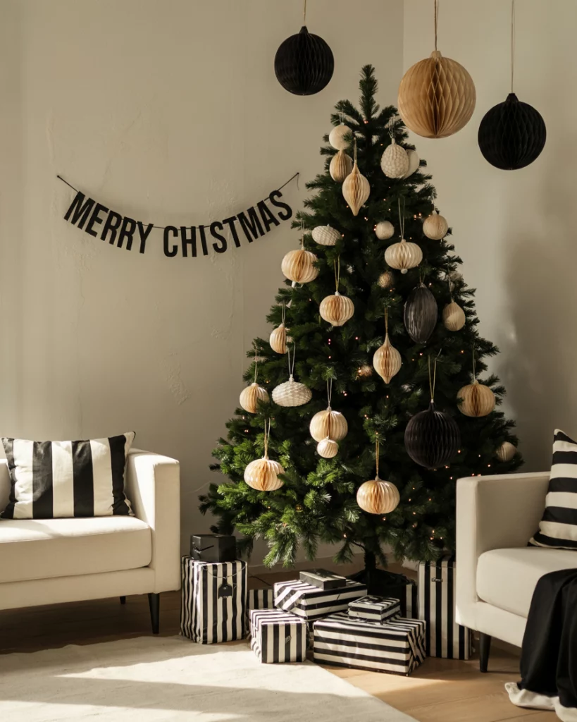 Who says Christmas must be red and green? In 2025, monochrome interiors are taking over. A black-and-white palette creates a sleek, modern holiday look that feels both festive and fashion-forward. Use striped throw blankets, geometric paper ornaments, and matte black trees for striking contrast. These ideas diy are ideal for design lovers who favor simple elegance with a bold twist. Add soft fairy lights and a few metallic touches for just enough sparkle without breaking the minimalist vibe. This setup works especially well in lofts or modern homes.