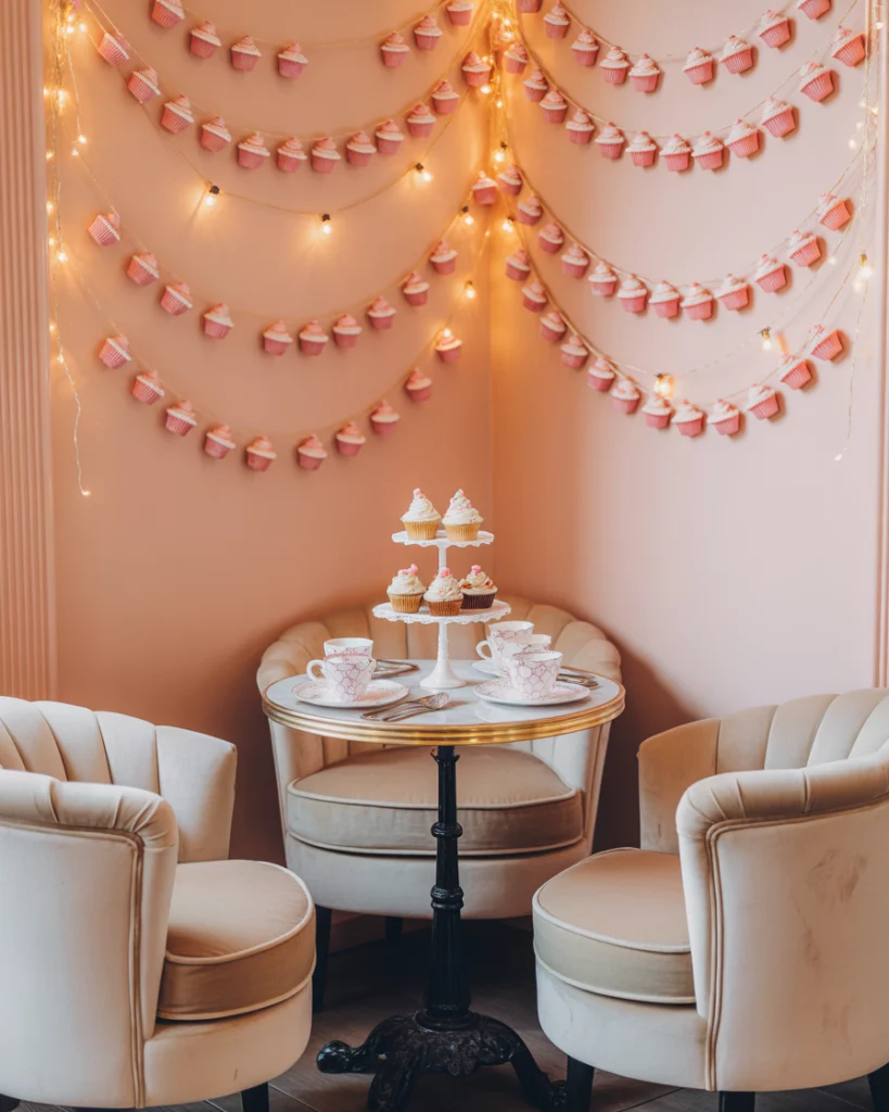 Go to a Parisian cafe with pink decorations, garlands of cup-cakes, and warm seating. This concept turns one of your rooms into a coffee, cocoa and cookie nest. It is one of the prettiest premises pink, particularly, the ones that seek the idea of cozy teens or feminine, photogenic spaces. Extra points on perfumed candles that scent like bakeries.