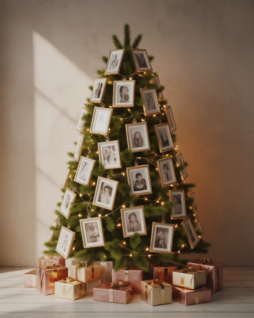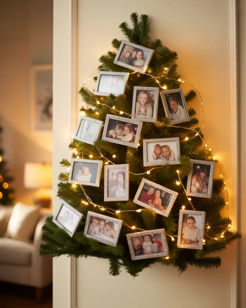 Form a tree of family photos in the shape of a triangle. Add fairy lights and homemade frames of cardstock or glitter. It is one of such touching concepts diy easy that evokes discussion and nostalgia. It is great in front doors or living rooms, and it brings a personal, narrative touch to your room.