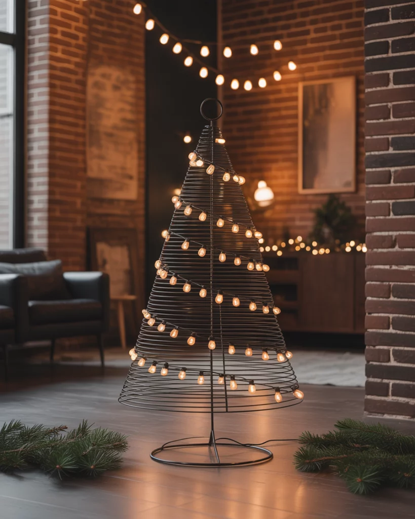 Channel city holiday mood with metal ornaments, bare bulbs, and wood of dark colors. Imagine wireframe trees, Edison bulbs on garlands and matte black accents. The style is ideal in lofts and contemporary homes and gives a masculine and edgy impression. Include homemade details such as black-painted pinecones or branches that have been sprayed with metal. An excellent option to minimalists.