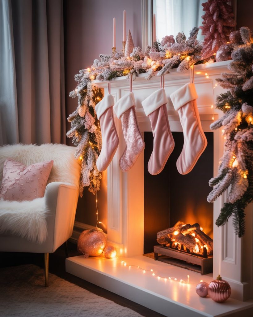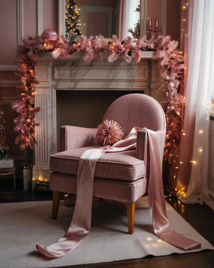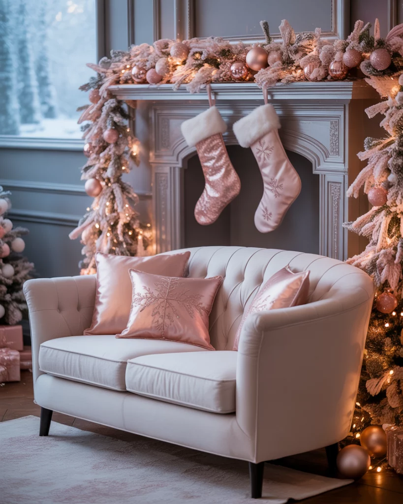 The pink Christmas trend is not leaving in 2025. The combination of soft blush colors with rose gold and snowy whites gives a relaxing, yet glamorous atmosphere. This concept is well suited in women-themed living rooms or bedrooms. Add frosty pink garlands, glass ornaments and velvet stockings. It is especially one of those pink decor ideas that are fantastic as teen idea decor, but still provide the grown-up appearance.