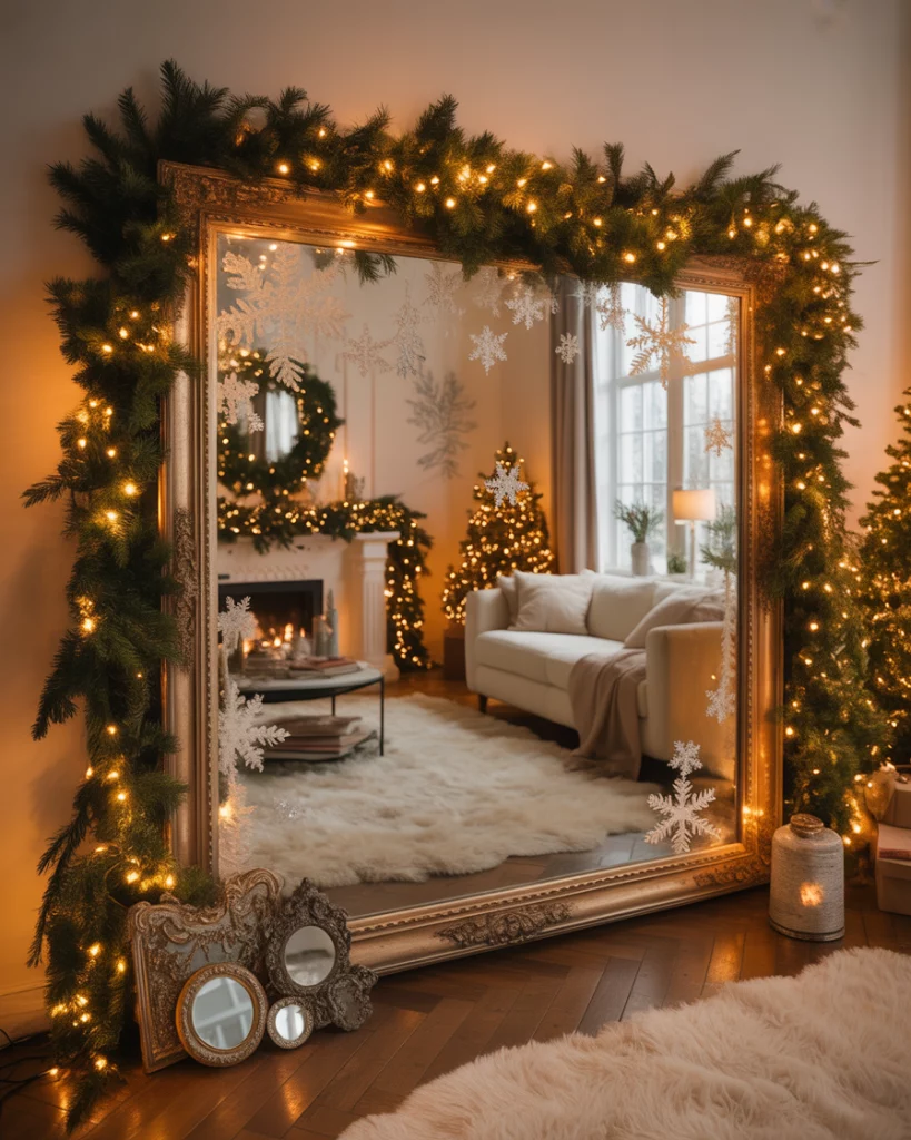 Multiplied mirrors look good on holidays. Decorate a wall or a shelf with various-sized mirrors that are lined with garlands, fairy lights and diy snowflake decals. The reflections increase the light and make your space bigger. This is among the most unestimated concepts diy easy that brings about the big wow with minimum effort. Perfect in the hallway or smaller living rooms that require an additional light.