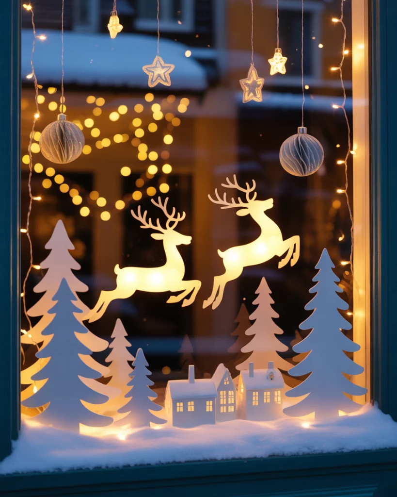 Among the simplest but the most effective concepts diy easy is to adorn your windows with glowing paper silhouettes. Imagine reindeer, fir trees and stars made of transparent paper and illuminated with LED candles or fairy lights. This do it yourself style can be used in any room, including kitchens and children rooms. It is also a wonderful family event during snowy weekends in December.