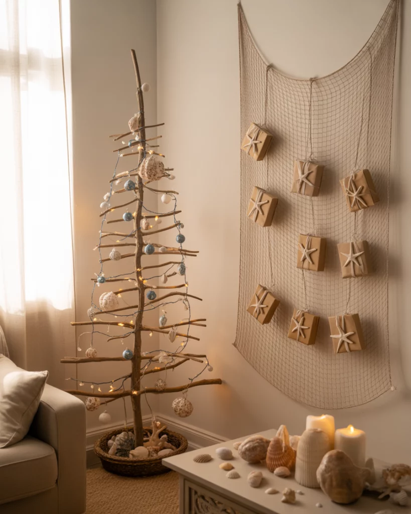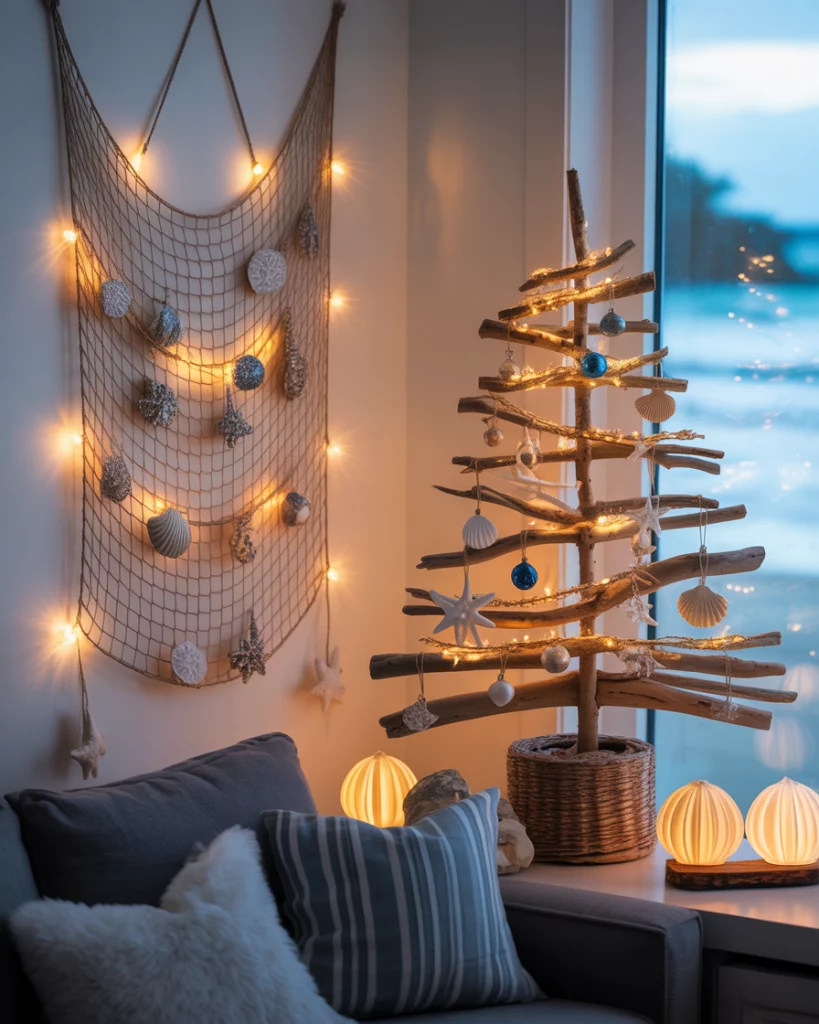 Not all people have snow–and not all would like to. The use of driftwood trees, seashell ornaments, and the use of simple blue and white colors in a coastal-inspired Christmas creates a relaxed atmosphere of a breeze. Ideal in beach houses or in anyone who needs a calming twist. Include a DIY advent calendar of linen pouches cut to a net or rope. It is an unusual diy variation of classic holiday ation concepts.