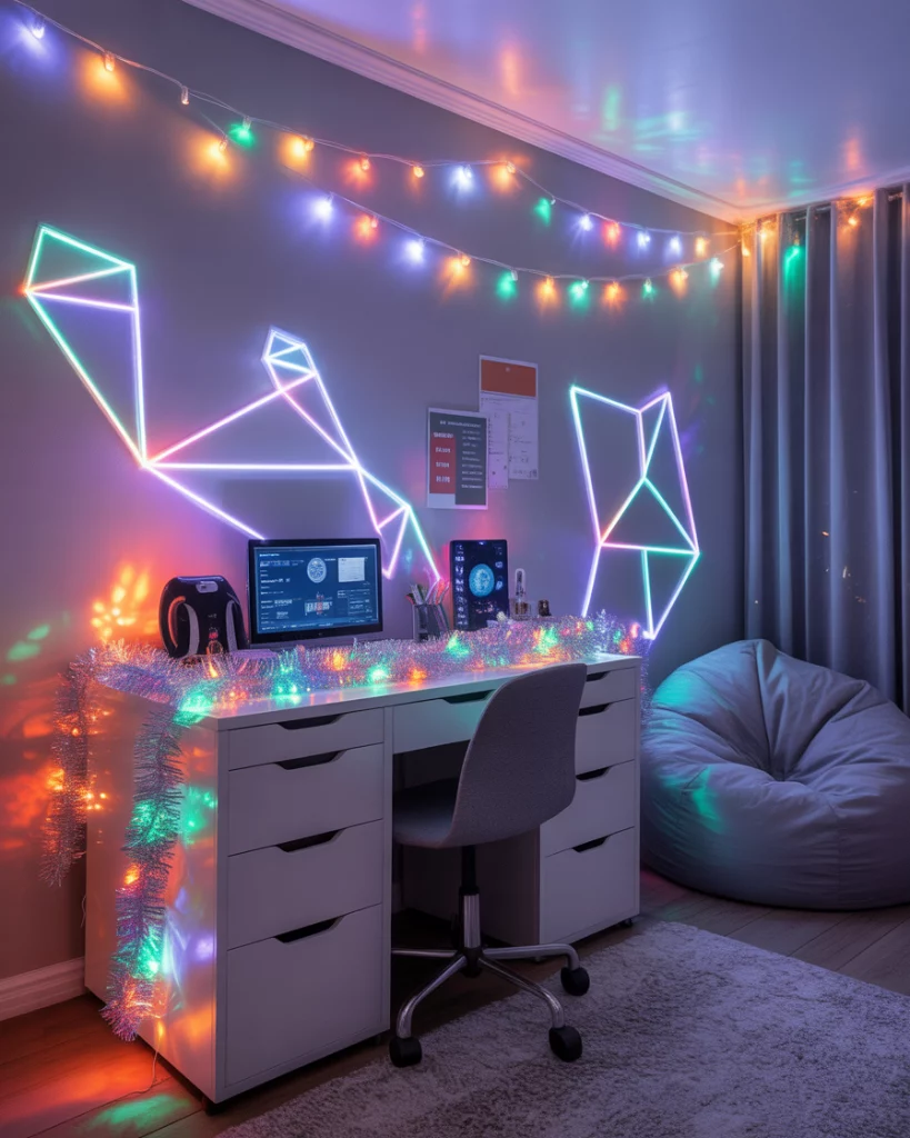 Need some ideas to give teens who are tired of the nutcracker collection of Grandma? LED strip lighting in holiday colors, voice activated decorations and holographic garlands struck the nail on the head. Add posters were made into holiday art with vinyl overlays or light-up wall decals. It is among the most fashionable concepts diy among digitally-minded youths and adolescents in 2025.