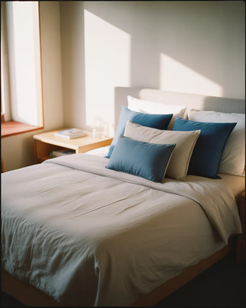 Soft color palettes are defining college apartment decor 2026, especially shades of Blue. In bedrooms, blue accents create a calming effect without overpowering the room. Pinterest Inspiration often pairs blue with warm neutrals for balance. An expert-style note: cooler tones work best when balanced with warm light sources to avoid a flat or cold feel.