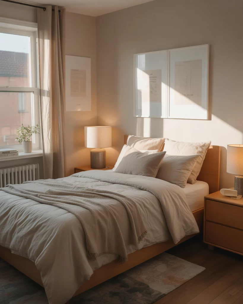 College bedrooms are no longer just for sleeping. In 2026, Bedroom cozy design focuses on calm colors, layered bedding, and personal details that make the room feel restorative. This approach works especially well for Aesthetic lovers who want visual harmony without sacrificing comfort. Soft headboards, warm neutrals, and subtle patterns elevate even the smallest room. I once spoke with a senior who swapped harsh dorm lighting for a thrifted lamp and warm bulbs. She said it was the first time her room felt like a place to rest, not just crash between classes.
