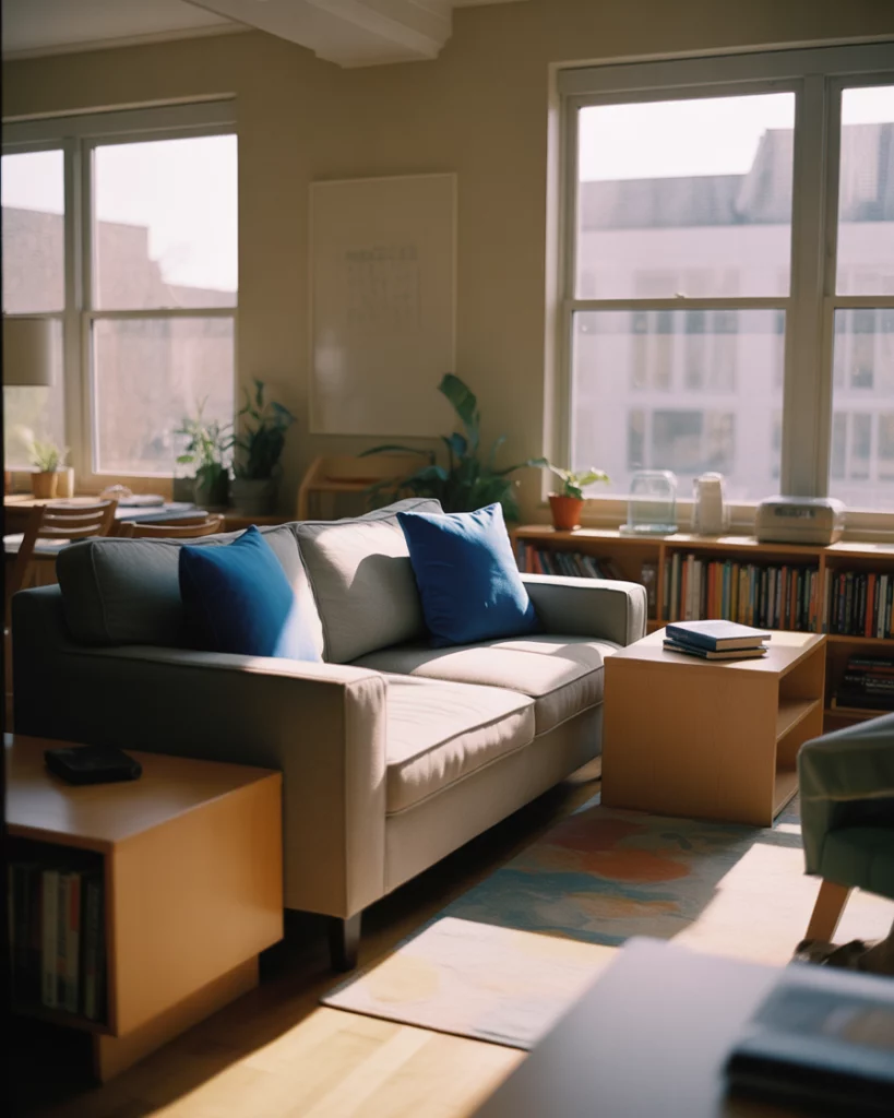 Blue continues to dominate college apartment decor 2026 thanks to its calming effect. Whether through Blue pillows, art, or bedding, this color adapts easily. It pairs well with Inspo living room ideas that lean coastal, modern, or minimalist without feeling themed. From a regional perspective, blue feels especially popular in coastal states and college towns where natural light is abundant. It reflects light beautifully and keeps rooms feeling open.