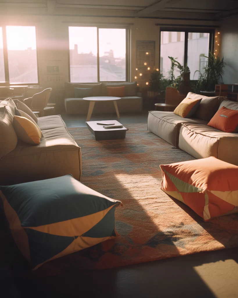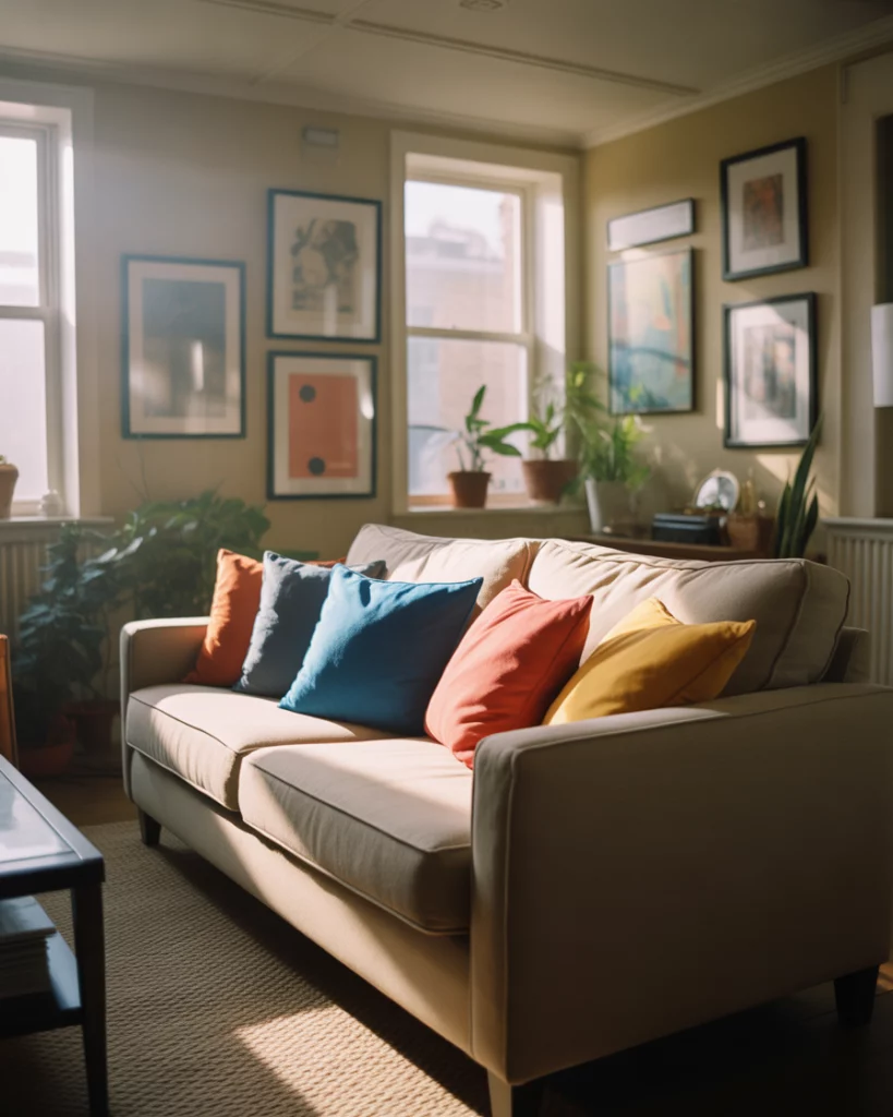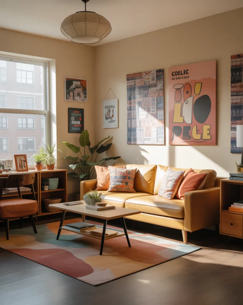 Students still want personality, just without permanence. Living room fun decor like bold pillows, playful art, and colorful throws delivers impact. These choices align with Inspo living room trends that favor flexibility and self-expression. Where it works best is in shared apartments. Temporary decor avoids conflicts over long-term style decisions.