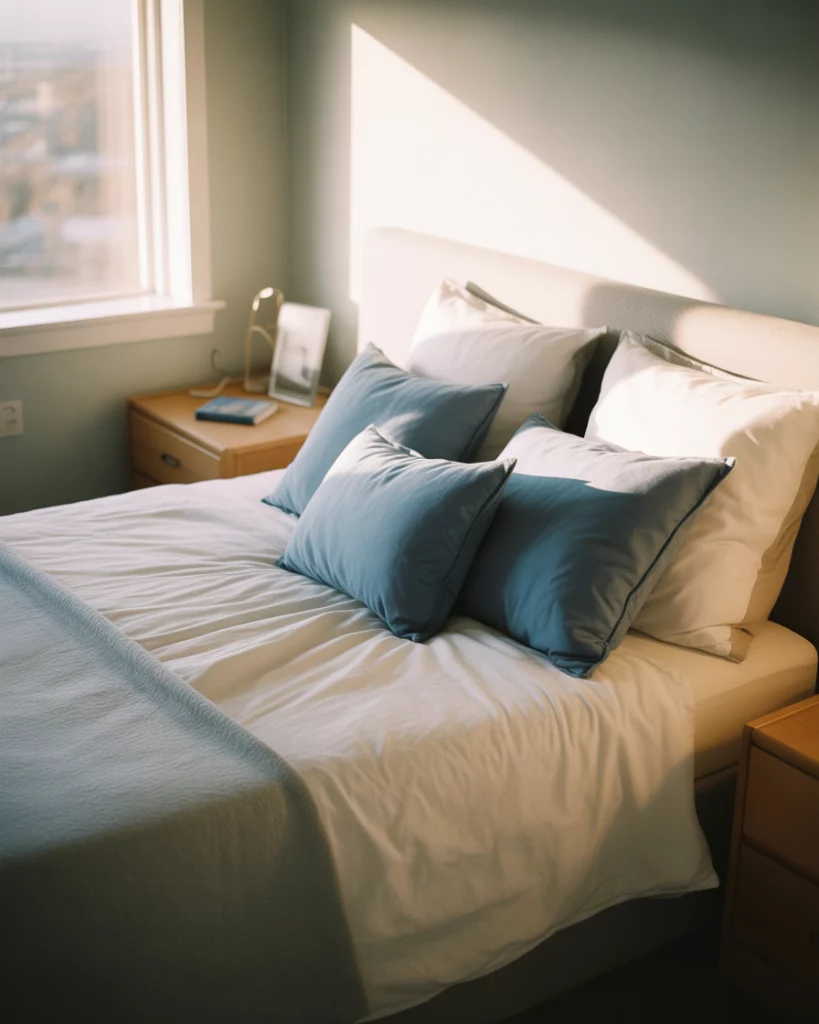 Soft color palettes are defining college apartment decor 2026, especially shades of Blue. In bedrooms, blue accents create a calming effect without overpowering the room. Pinterest Inspiration often pairs blue with warm neutrals for balance. An expert-style note: cooler tones work best when balanced with warm light sources to avoid a flat or cold feel.