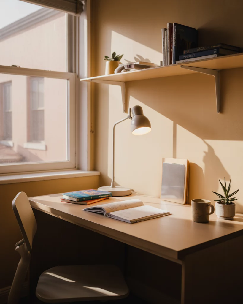 Dedicated study zones are essential in college apartment decor 2026. An Aesthetic desk setup with good lighting and minimal clutter improves focus. Pinterest Ideas often highlight small corners transformed into productive, stylish workspaces. A practical insight is to separate work and rest visually. Even a small divider helps maintain balance.