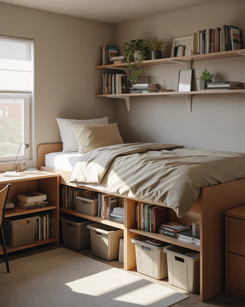 Making the most of limited square footage is central to A budget bedrooms small spaces planning. In college apartment decor 2026, creativity matters more than size. Wall-mounted shelves, under-bed storage, and slim furniture keep rooms functional. Mixing in ating bedroom touches like layered textiles adds personality without clutter. The budget angle is key here. Most of these upgrades cost less than a textbook. Prioritizing multifunctional pieces saves money long-term and reduces the urge to replace furniture every move.