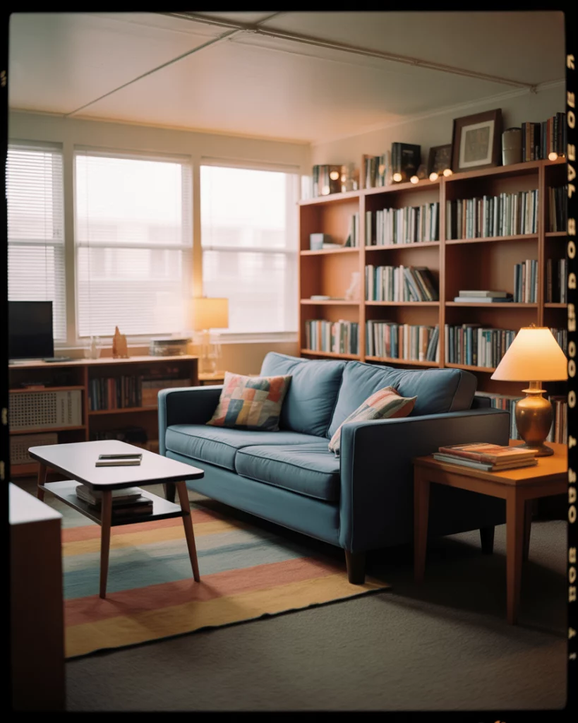Blue continues to dominate college apartment decor 2026 thanks to its calming effect. Whether through Blue pillows, art, or bedding, this color adapts easily. It pairs well with Inspo living room ideas that lean coastal, modern, or minimalist without feeling themed. From a regional perspective, blue feels especially popular in coastal states and college towns where natural light is abundant. It reflects light beautifully and keeps rooms feeling open.