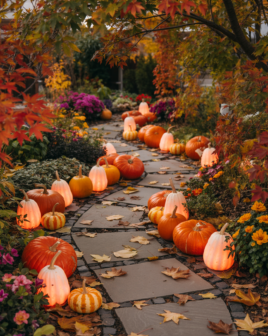 Carve or paint mini pumpkins (plastic pumpkins for reusability) and line them along garden paths in your outdoor yards simple setup. Put LED tea lights indoors to make a secure, glowing path to your door. This is cheap, fun for kids, and adaptable for both cute and scary styles.