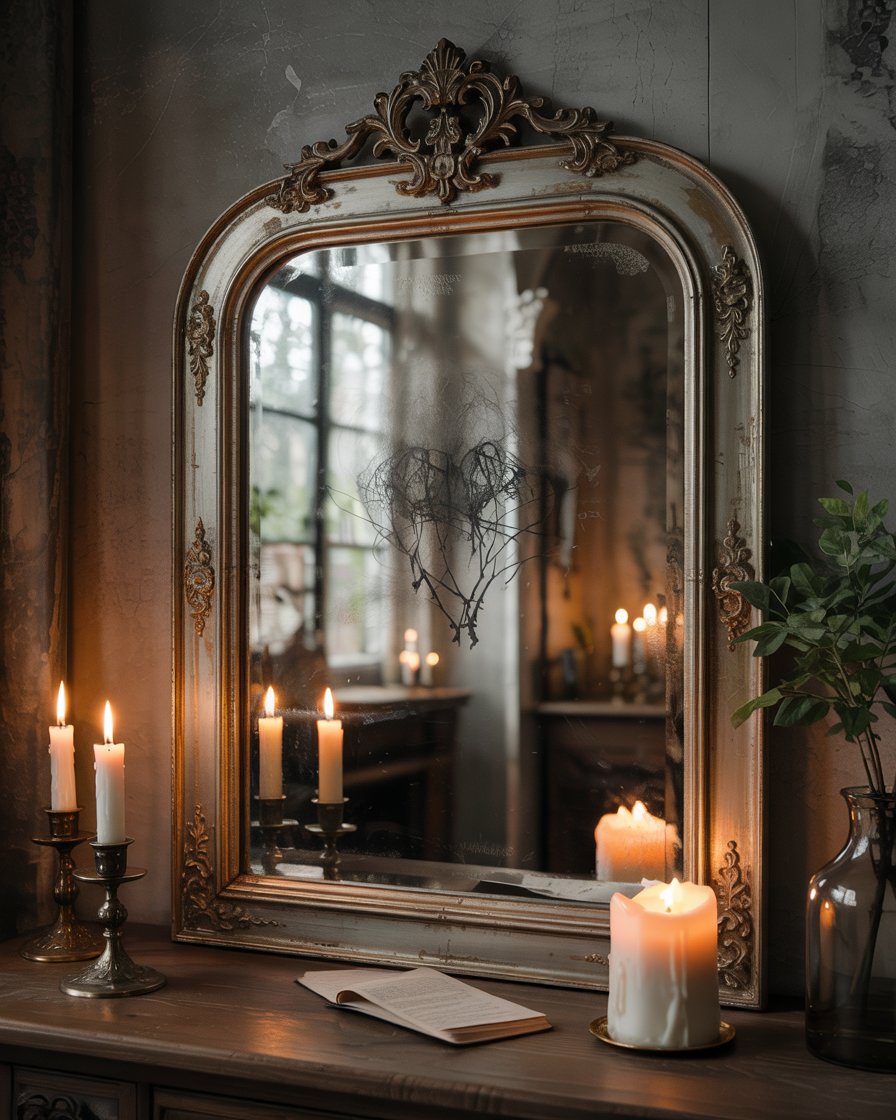 Repurpose an old mirror from a dollar tree or thrift shop to create a subtle, eerie effect without showing any people. Apply frosted glass spray or a light layer of translucent paint to make it look misty, and add shadowy shapes or patterns behind the glass for depth. In low light, either indoor or on outdoor yards front porches easy, the mirror gives off a mysterious and scary vibe. This cheap DIY adds a haunting focal point without relying on faces or figures.