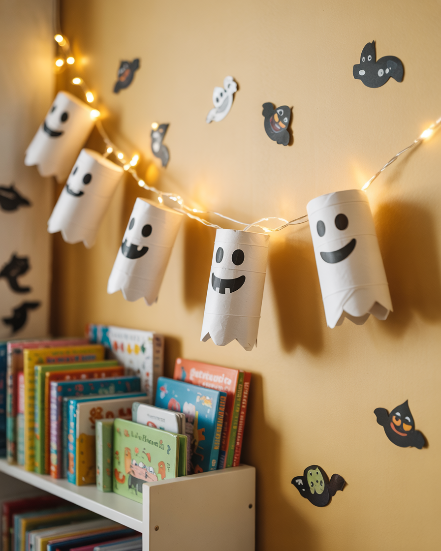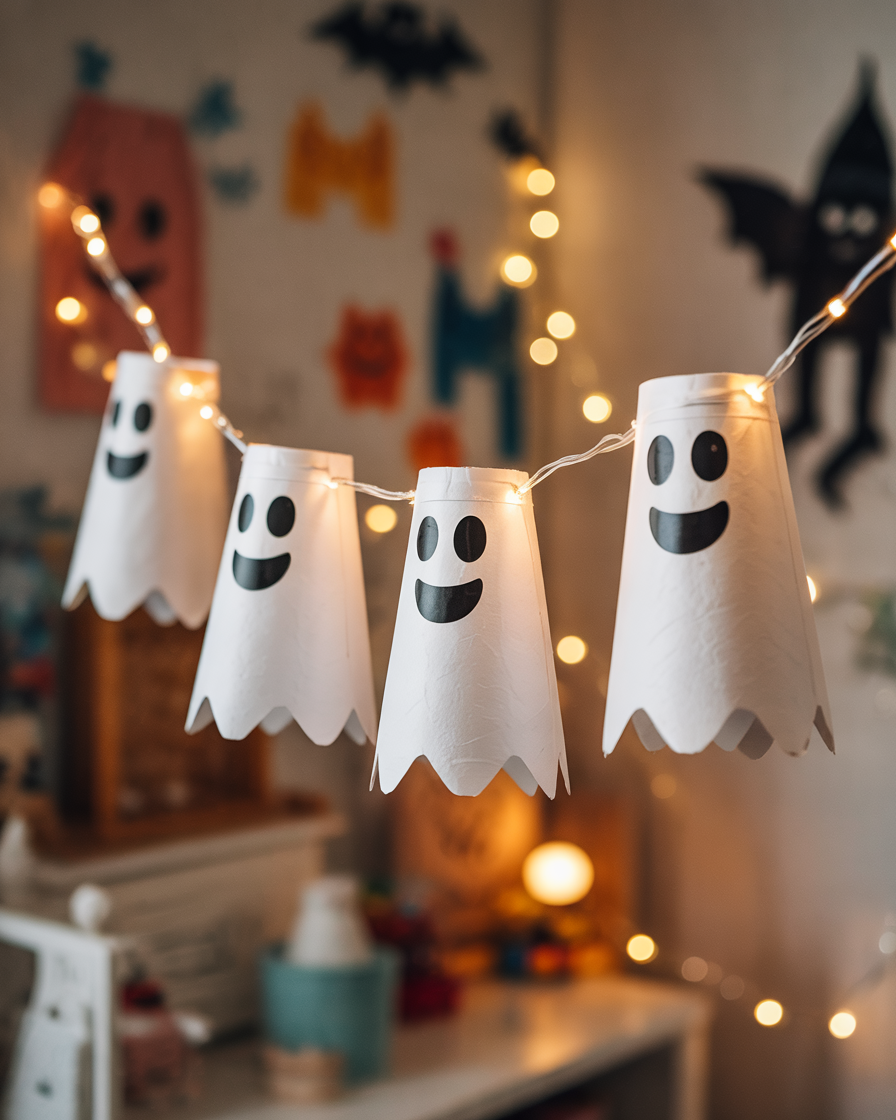 2. Indoor Ghost Garland from Toilet Paper Rolls