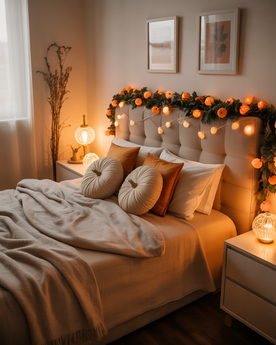 20. Bedroom Pumpkin Fairy Light Garland