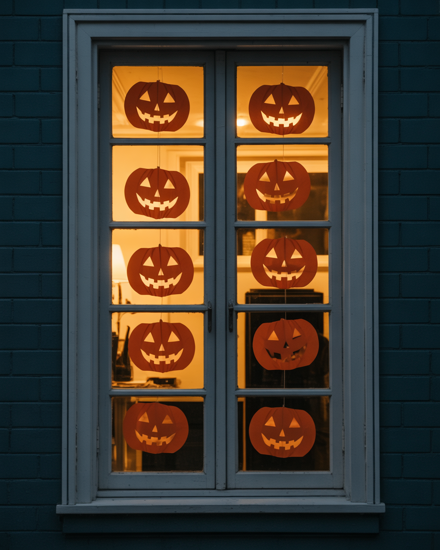 24. Paper Jack-o’-Lantern Window Display
