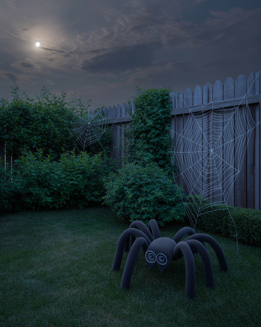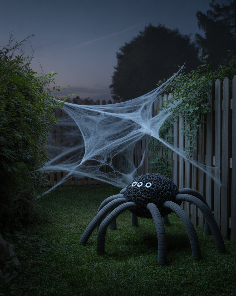 Stretch cotton or yarn webs across bushes, fences, or bedroom walls, then spray with glow-in-the-dark paint. Include a foam balls and pipe insulation giant spider outside to have that added effect. This works both in outdoor yards simple setups and indoor party environments for an eerie, glowing effect.