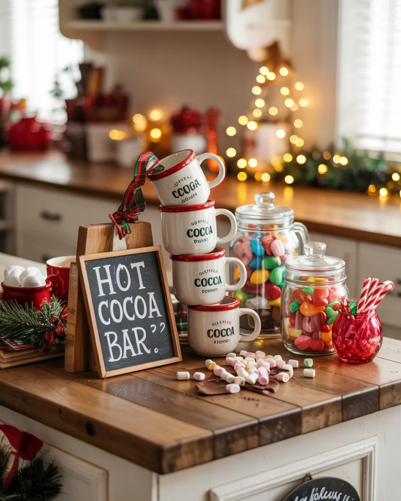 14. Hot Cocoa Bar Setup with Dollar Tree Mugs