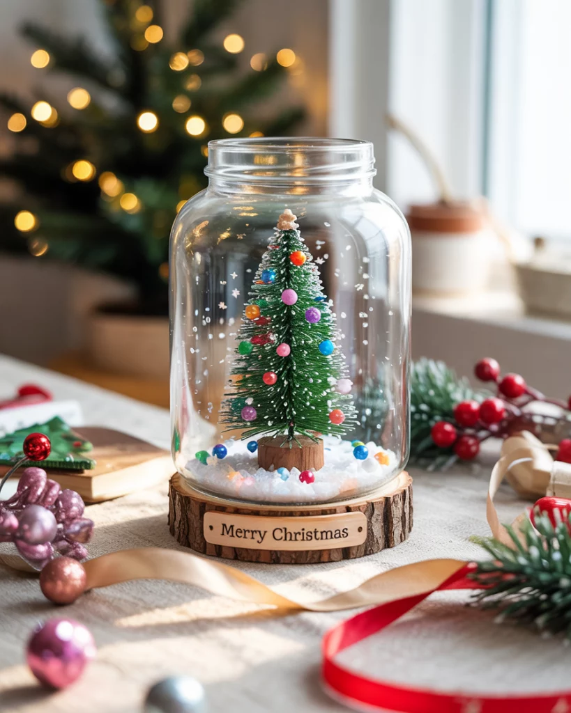 Pick up clear plastic ornaments or jars from Dollar Tree and let the little ones make their own snow globes. Add mini trees, faux snow, glitter, and a drop of glycerin. These crafts for kids are fun, engaging, and make great keepsakes or gifts. It’s an easy diy project you can complete together in under an hour.