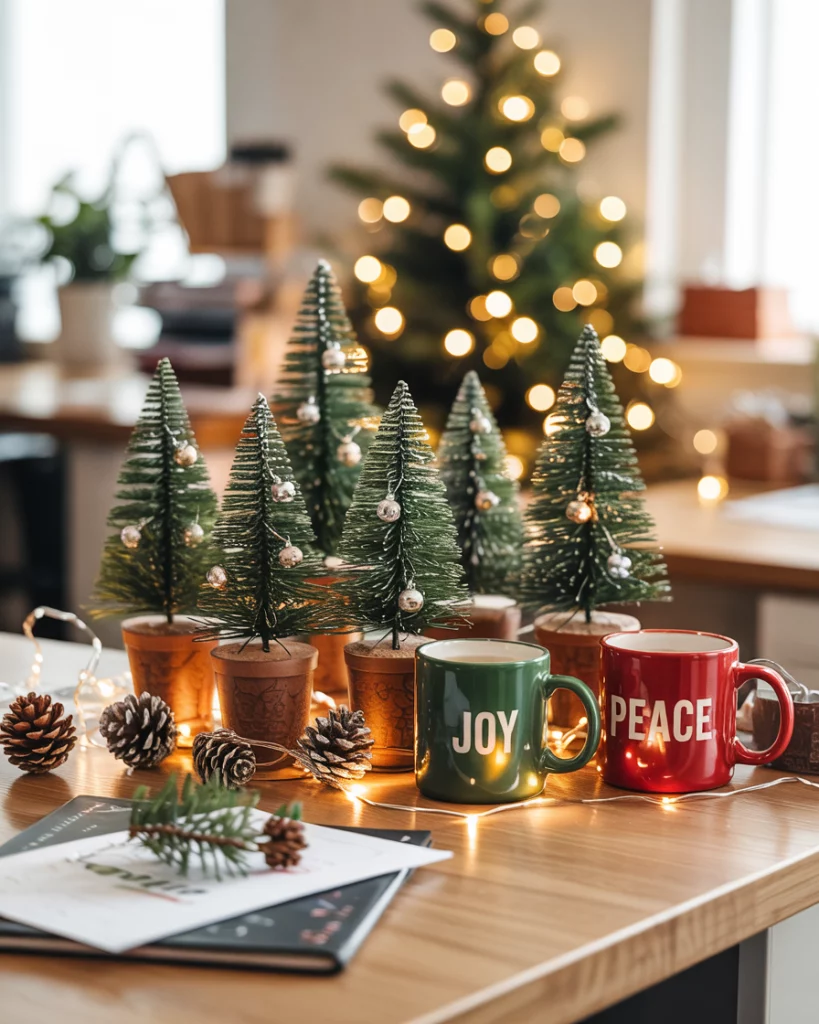 Bring holiday cheer to your office space with these smart Dollar Tree hacks. Use mini trees, battery-powered fairy lights, and tiny stockings for a festive workstation. A mug filled with candy canes becomes a cute pen holder. These ideas are perfect for personalizing your space and boosting your mood during long winter days — and they’re all cheap and cheerful.