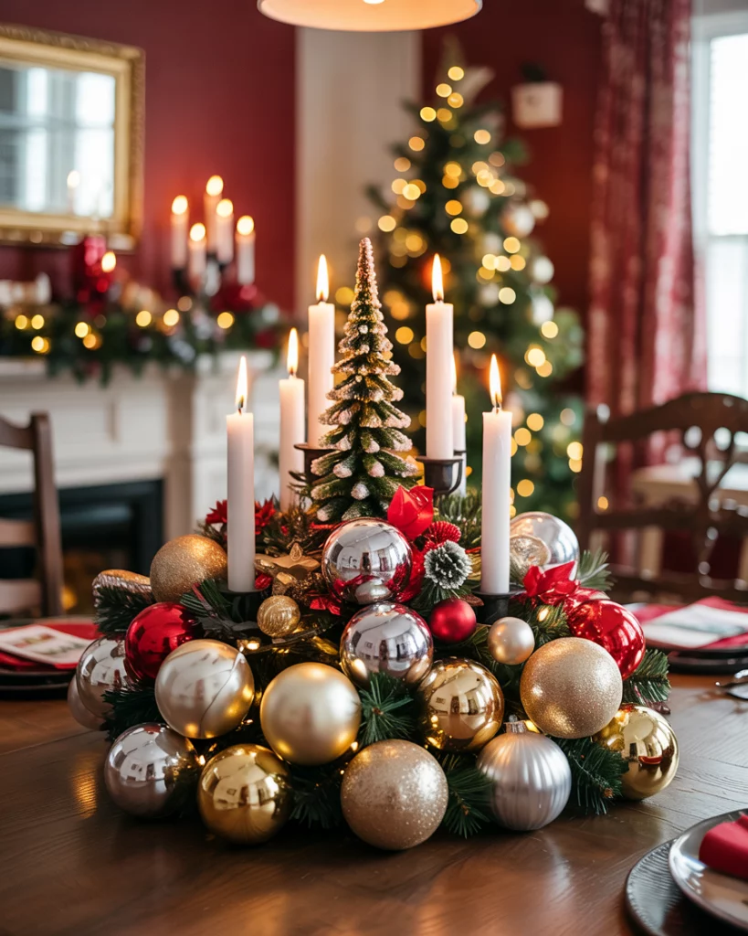 Make a centerpiece easy by filling a Dollar Tree tray or bowl with ornaments, candles, and pine branches. These easy diy arrangements can dress up your dining table, coffee table, or even a mantel. Add height with a candle stand or mix textures like glass and wood for visual interest. It’s the go-to trick for holiday flair without fuss.