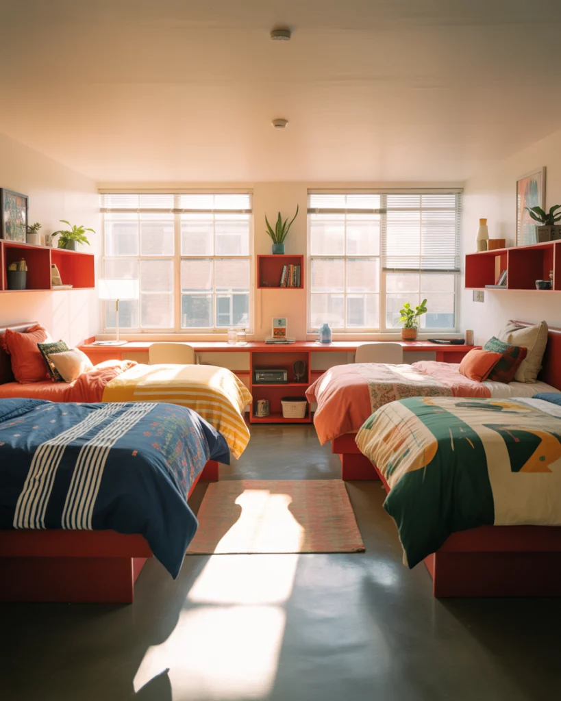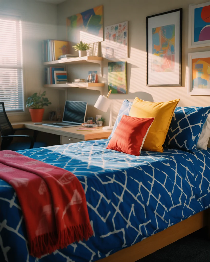 Designing a triple dorm requires intention. A colorful approach helps define individual zones while keeping the room lively. Coordinated color families prevent the space from feeling chaotic even with three personalities sharing one room. A micro anecdote many students share: agreeing on a loose color plan before move-in saves awkward conversations later. Visual harmony reduces friction more than most expect.