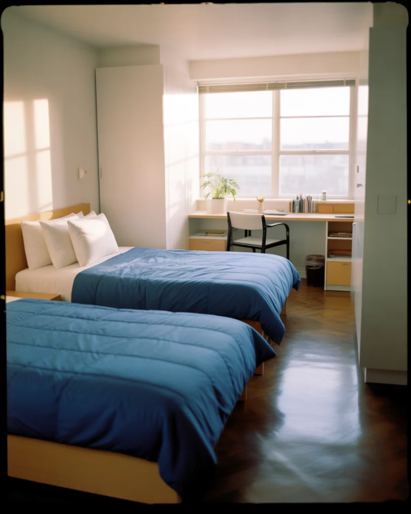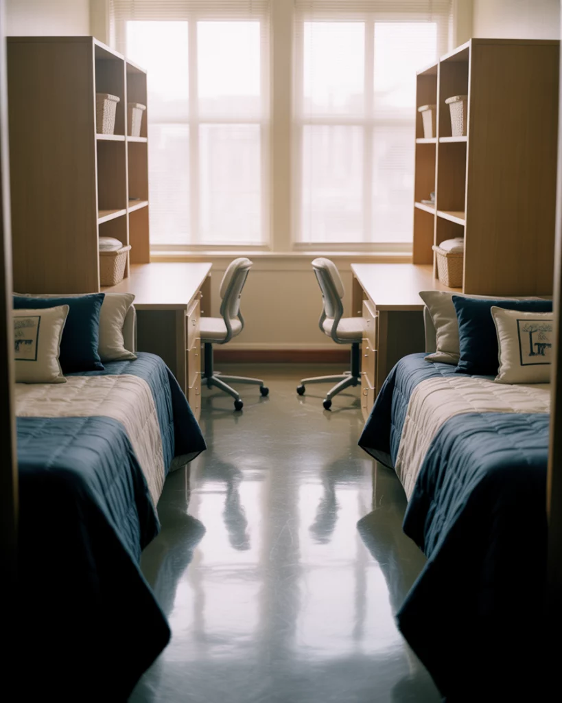Designing a shared dorm. This idea focuses on symmetry for the organization, divided storage, and coordinating decor so both roommates feel equally at home. To decrease visual chaos, try to match bed heights and mirror layouts. This is a student-scaled reflection of homeowner behavior. People naturally take care of spaces more when the boundaries are clear. The same psychology applies to dorm rooms with shared responsibilities.